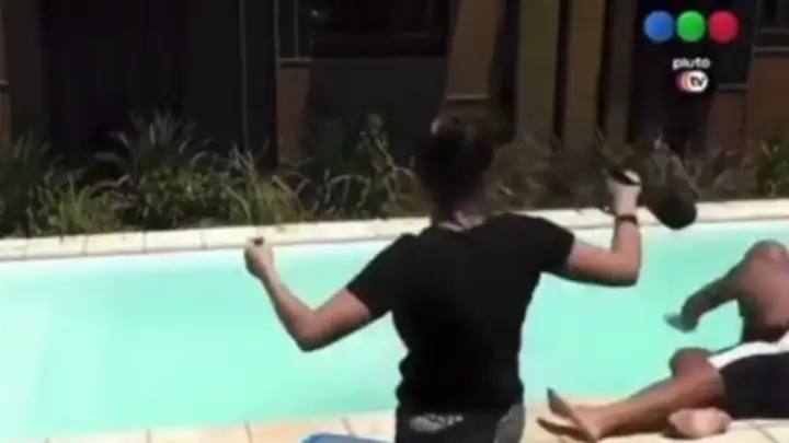 La ex diputada empujó a Alfa al agua, pero este perdió el equilibrio, intentando mantenerse fuera, y terminó cayendo duramente. En esa caída, golpeó parte de la cintura con el borde de la pileta y posteriormente cayó al agua. Romina se dio cuenta casi inmediatamente y se tomó la cabeza, mientras él salía con claras muestras de dolor. Una vez afuera, ella y Camila empezaron a preguntarle cómo se encontraba y si estaba muy dolido. Claramente, el golpe había sido demasiado fuerte y en una zona sensible,