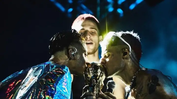 Luego apareció Chita, pareja de Ca7riel, para cantar "No fue" junto a ambos y el otro invitado de la velada sería Wos para compartir escenario con el dúo cantar uno de los ya clásicos del repertorio de ambos, "Niño gordo flaco".