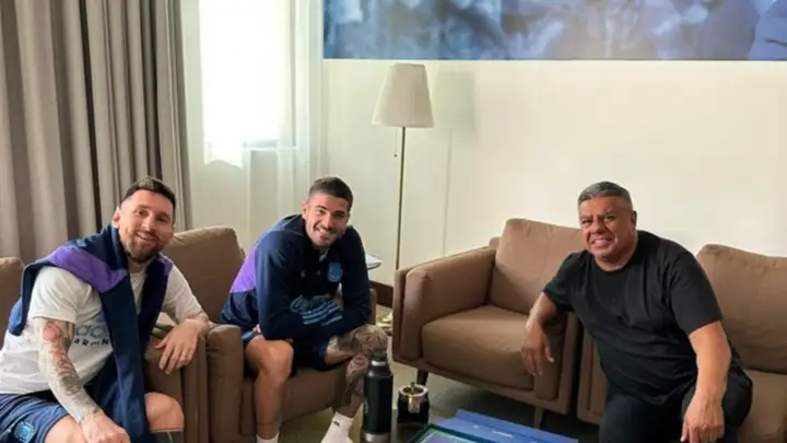 A poco más de 24 horas para que comience el partido entre la Selección Argentina y Croacia, en el estadio Lusail de Doha, Claudio Tapia se hizo presente en la concentración albiceleste para conversar de manera distendida con Lionel Messi y Rodrigo De Paul. El presidente de la Asociación del Fútbol Argentino compartió unos mates con los futbolistas y luego posteó una foto en sus redes sociales.