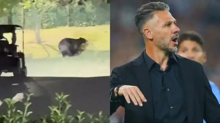 Sin embargo, la noticia de la jornada vinculada a Demichelis estuvo lejos de lo futbolístico y sí relacionada a su familia. En su casa en tierras mexicanas, apareció un oso que asustó a toda la familia. Evangelina Anderson, a través de sus historias de Instagram, compartió las imágenes del insólito momento que vivieron: “No te acerques, ¿eh? Es que no hay luz. Emma, vení, porque si viene corriendo acá me da miedo. Se me salió el corazón, está allá atrás, igual es enorme”, se escucha en el video.
