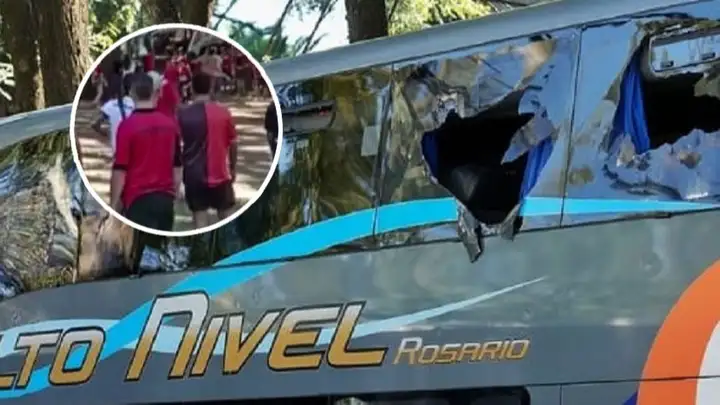 El momento en el que hinchas de Newell's apedrearon el micro de Central