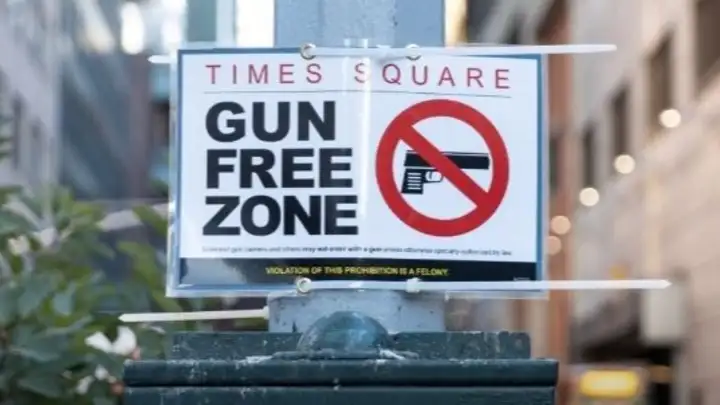 A través de señales colocadas en diferentes calles y zonas, la gente podía empezar a identificar donde no estará permitido la portación de armas. Algunos carteles fueron colocados principalmente en la avenida más importante, Times Square. Estos decían "Gun Free Zone" (Zona Libre de Armas, en español). Como si el mensaje no fuera tan claro, a un costado estaba un dibujo de un arma tachada, bien parecido a las señales de tránsito que están en cualquier parte del mundo.