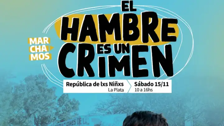 Distintas organizaciones sociales, sindicatos y espacios comunitarios convocaron a una nueva jornada de movilización en La Plata bajo el lema “El hambre es un crimen”. La actividad se desarrollará el sábado 15 de noviembre en la República de los Niños, con una programación que combinará actividades recreativas, intervenciones culturales y un acto central con participación de chicos y chicas.