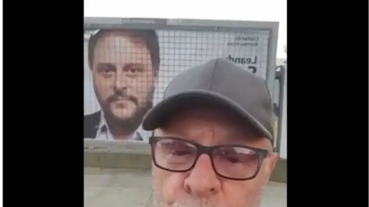 "Yo, Rodolfo Orozco, sólo pongo los votos por Santoro", es la breve oración que le dice a su cámara en modo video selfie León Gieco, dejándose ver detrás el afiche con el rostro de Leandro Santoro.