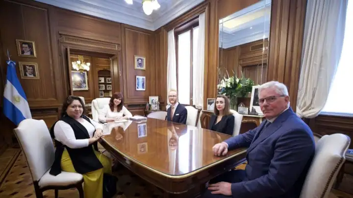 En tanto, la Vicepresidenta publicó en su cuenta de Twitter: "Recibí hoy a Kristinn Hrafnsson, editor general, y a Joseph Farrell, embajador de WikiLeaks. Están realizando una gira latinoamericana para reclamar la libertad de Julian Assange". El texto fue acompañado por una foto de la reunión en el Senado.