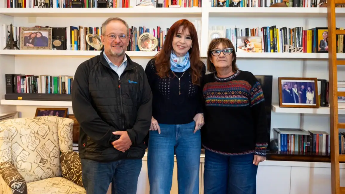 Este domingo, la expresidenta Cristina Kirchner se reunió con el secretario general de la Internacional de la Educación, David Edwards, la titular de la CTERA, Sonia Alesso en su casa.