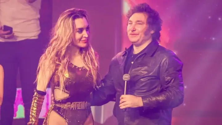 Y agregó: "Lo estamos logrando. Evitamos la híper, la inflación empezó a bajar y prontamente vamos a salir adelante, así que con fe que vamos a salir", expresó Milei, desde el escenario, junto a su pareja, a quien también besó.