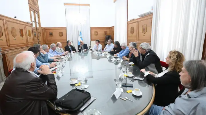 El jefe de Gabinete, Guillermo Francos, encabezó este lunes una reunión con los principales líderes de la CGT, en la Casa de Gobierno. Se trata de un nuevo marco de diálogo que inició el Ejecutivo, luego de meses en donde la relación con la central obrera fue distante.