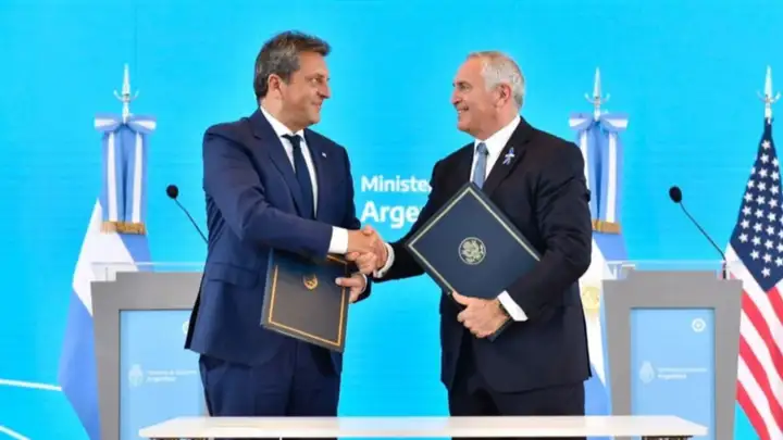 El ministro de Economía, Sergio Massa, junto al embajador de Estados Unidos, Marc Stanley, formalizaron este lunes un acuerdo de intercambio de información fiscal con dicho país, que le permitirá al Gobierno acceder a cuentas bancarias de argentinos no declaradas.