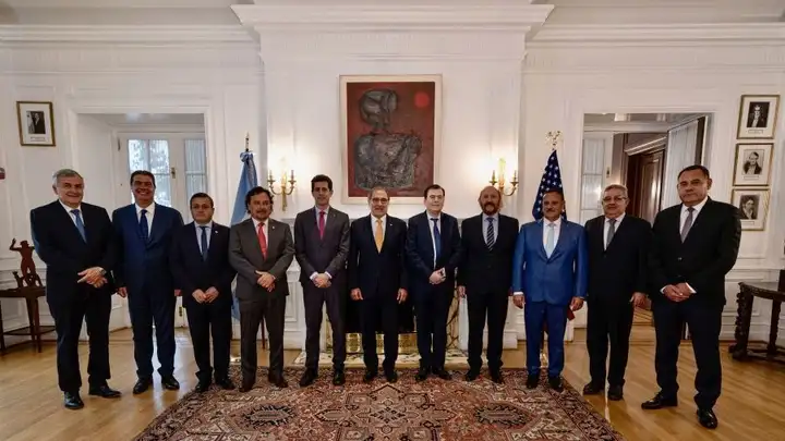 La misión comercial e institucional en Washington (Estados Unidos) de los gobernadores del Norte Grande comenzó oficialmente con un encuentro de trabajo con las principales Think Tanks, donde el gobernador de Salta Gustavo Sáenz y los otros mandatarios del NOA y NEA expusieron sobre “El potencial del Norte Grande en la relación bilateral con EE.UU.: energía, seguridad alimentaria, minería y reconversión eléctrica”.