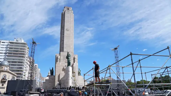 El montaje del espectáculo comenzó el jueves con el armado del escenario y la instalación de la infraestructura técnica, en un operativo conjunto entre el Gobierno de Santa Fe y la Municipalidad de Rosario.