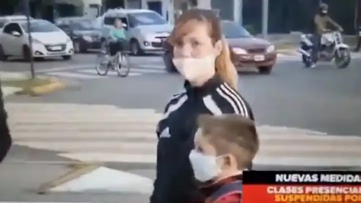 La conductora que estaba en el piso del canal le pidió que vaya a hablar con otro padre, por supuesto, para que se exprese en contra de la decisión de cerrar los colegios por 15 días. "¿Estás de acuerdo con la medida que se tomó que los chiquitos no vengan al colegio?, insistió el reportero. "Hace más de un año que los tengo en mi casa, tengo uno de cuatro años y me parece bien, perfecto. Arriesgando que se me contagie la nena de 10 años después de tanto tiempo que estuve cuidándolos. Para mí es un riesgo que venga al colegio, no me gustaría que mañana o pasado haya casos, se contagie mi hija y a través de ella nos contagiemos nosotros".