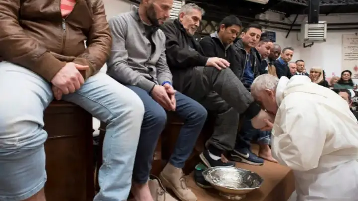 El papa Francisco lavó los pies a 12 jóvenes detenidos en una cárcel de menores en Roma, Italia, luego de cumplir con los ritos de Jueves Santo, como representación del gesto que tuvo Jesús con sus doce apóstoles antes de ser crucificado.