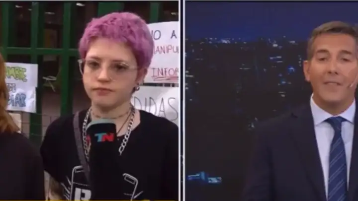 Con paciencia, la joven le explicó al periodista que ya había chicaneado a su amiga: "No, lo que se está reclamando no son tanto viandas...". "Ah, entonces viandas no, lo sacamos. El Lengüitas no reclama viandas. Listo, tema solucionado ¿Cuál es el otro problema?", la interrumpió el conductor del canal ultraopositor. "Sí, el Lengüitas reclama viandas. No me interrumpas por favor. ¿Podés escuchar?", lo frenó en seco Agus.